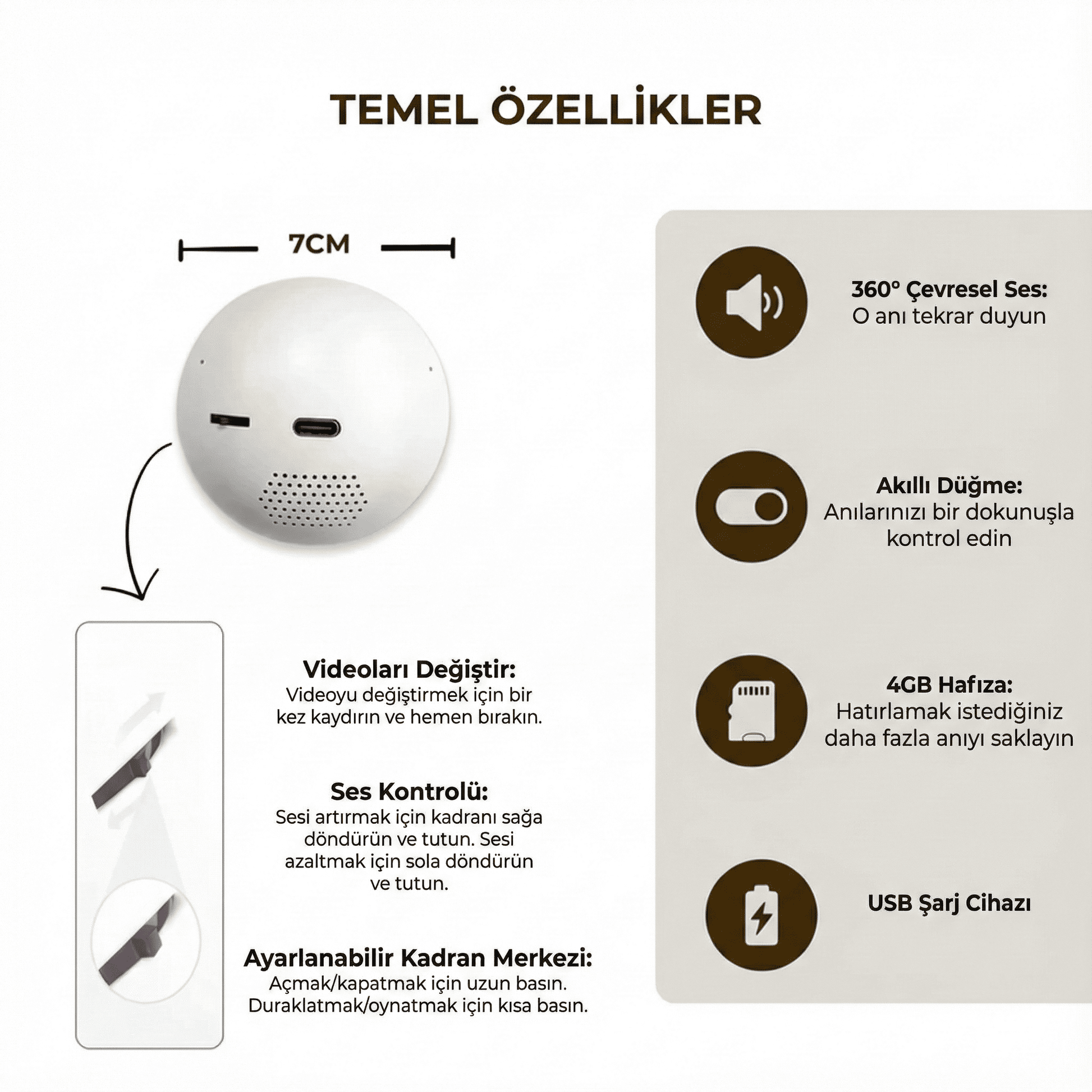 - Ürün Boyutu: 7 cm çapında kompakt tasarım